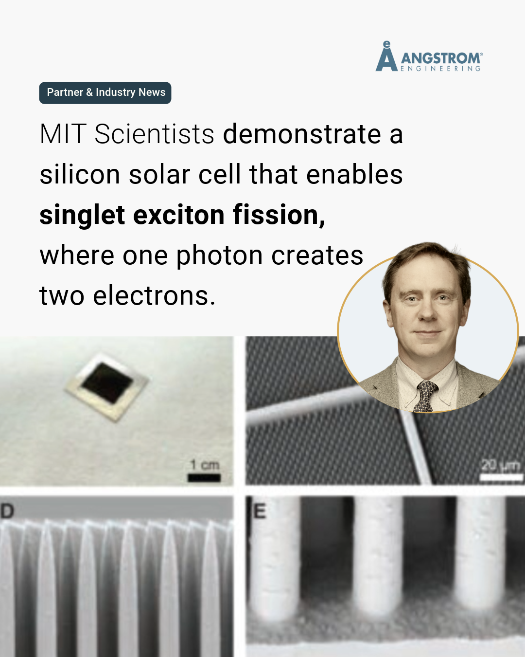 Our partners in the Baldo group at MIT have published their recent work in silicon solar cells that demonstrate the possibility of singlet exciton fission. “Key to their achievement was an interface that transfers the electrons and holes sequentially into silicon instead of both at once.”